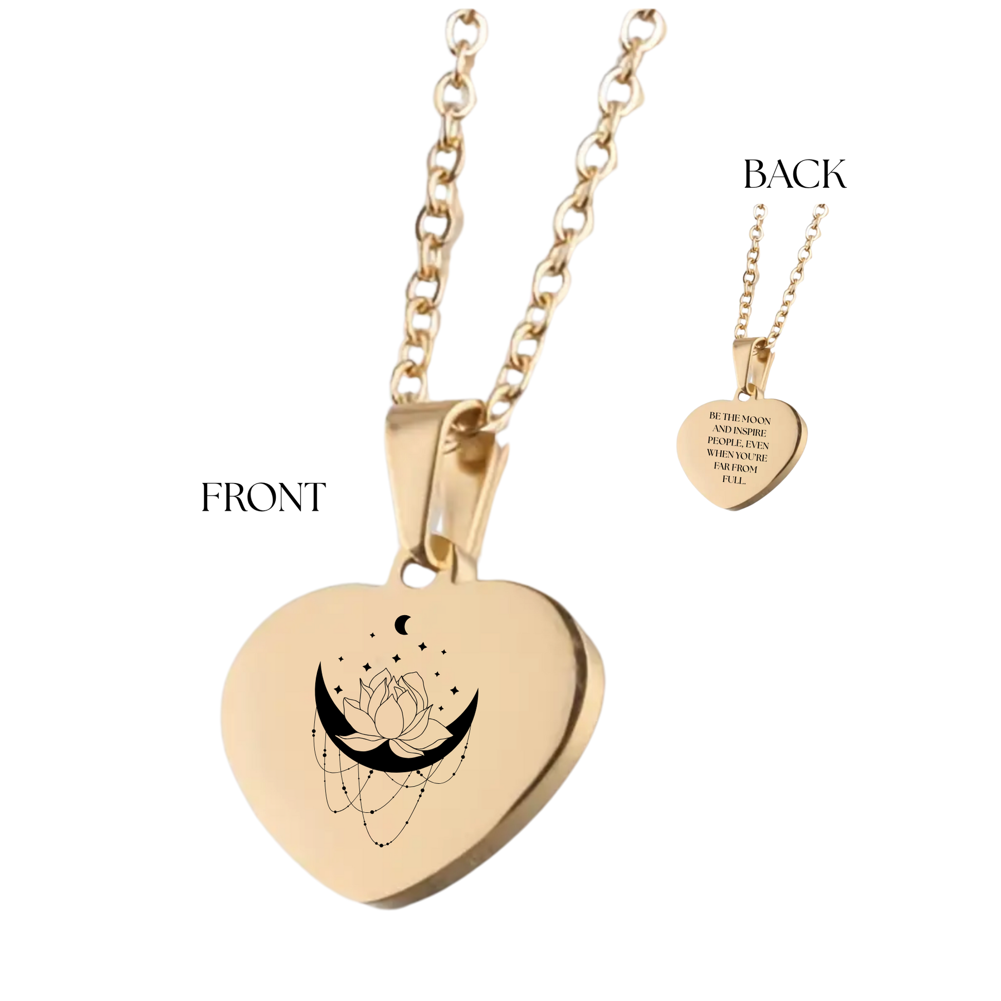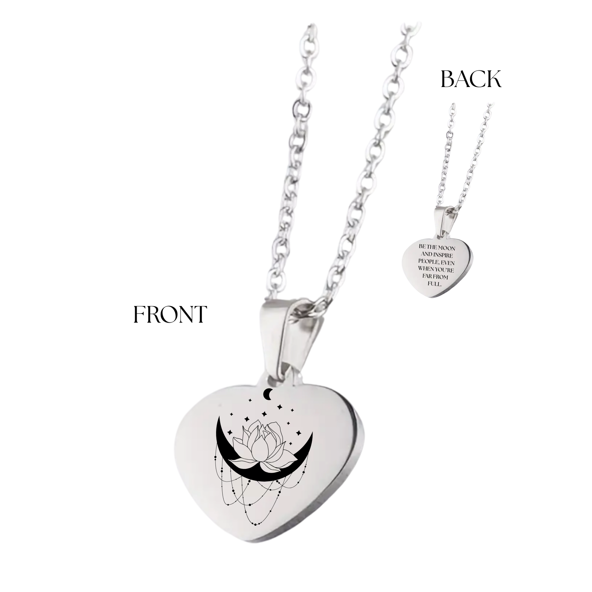 Crafted from durable stainless steel, the Lotus and Moon necklace combines elegant symbolism with lasting quality. The lotus represents purity and growth, while the moon signifies intuition and transformation, making this piece a meaningful accessory. Its lightweight design ensures comfortable wear for daily use, and the stainless steel construction resists tarnish and corrosion, maintaining its polished look over time. Perfect for those who appreciate both style and subtle spiritual significance.